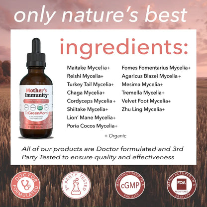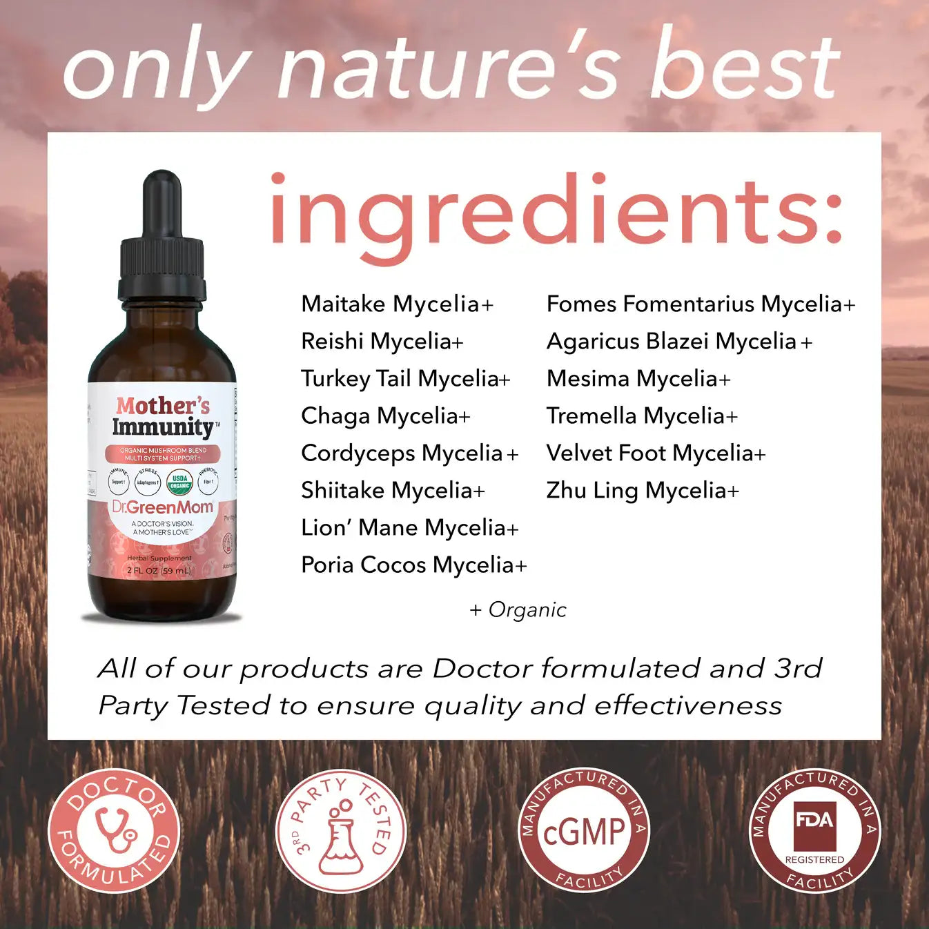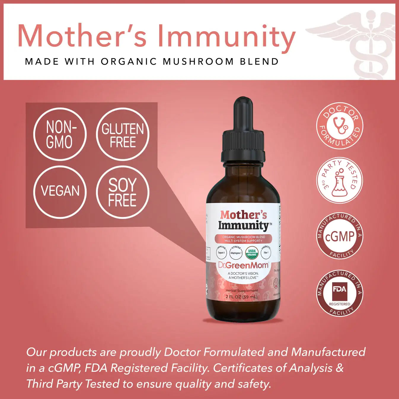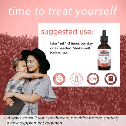 Mother’s Immunity Support is a certified USDA Organic Immune Enhancing formula designed for mothers, but helpful for the whole family