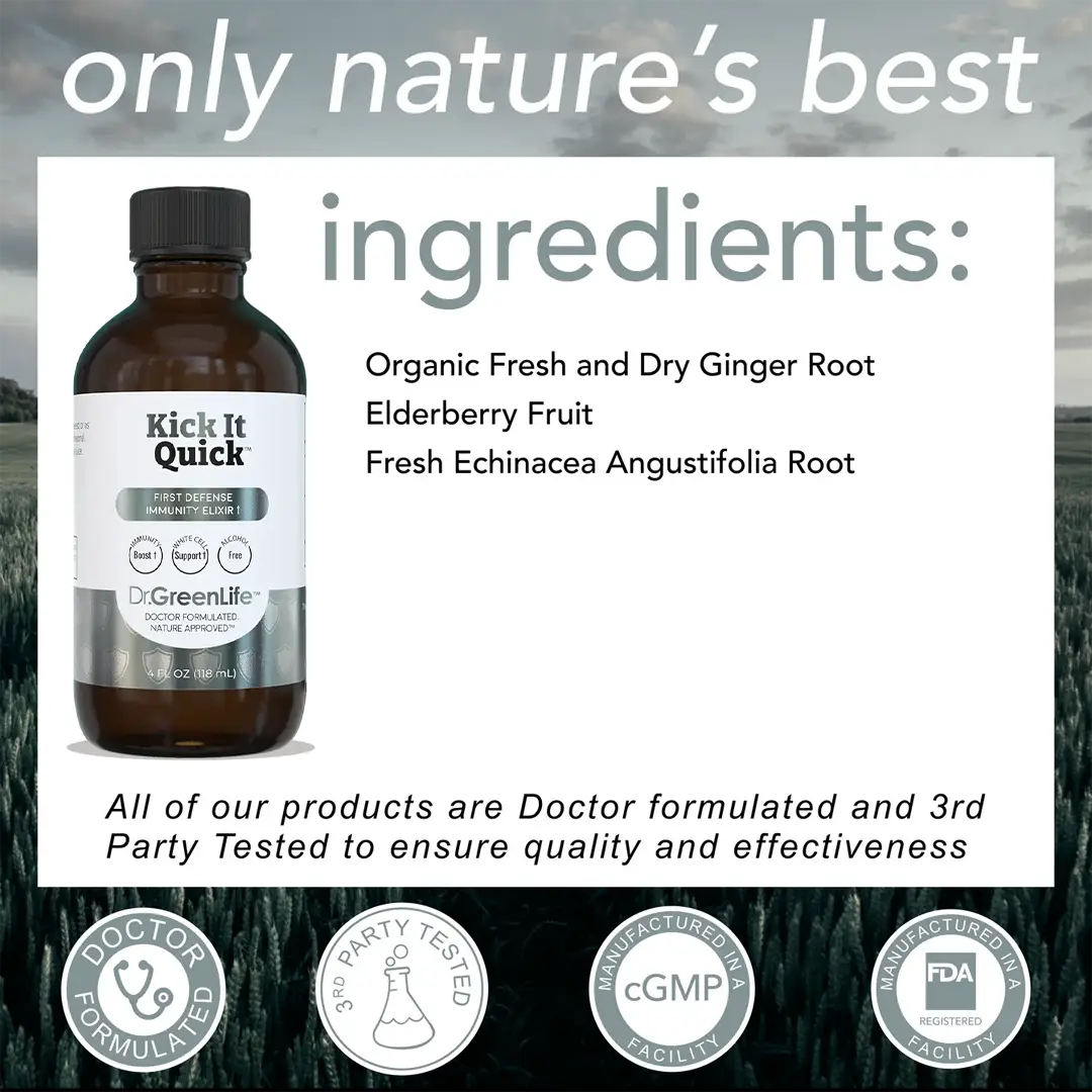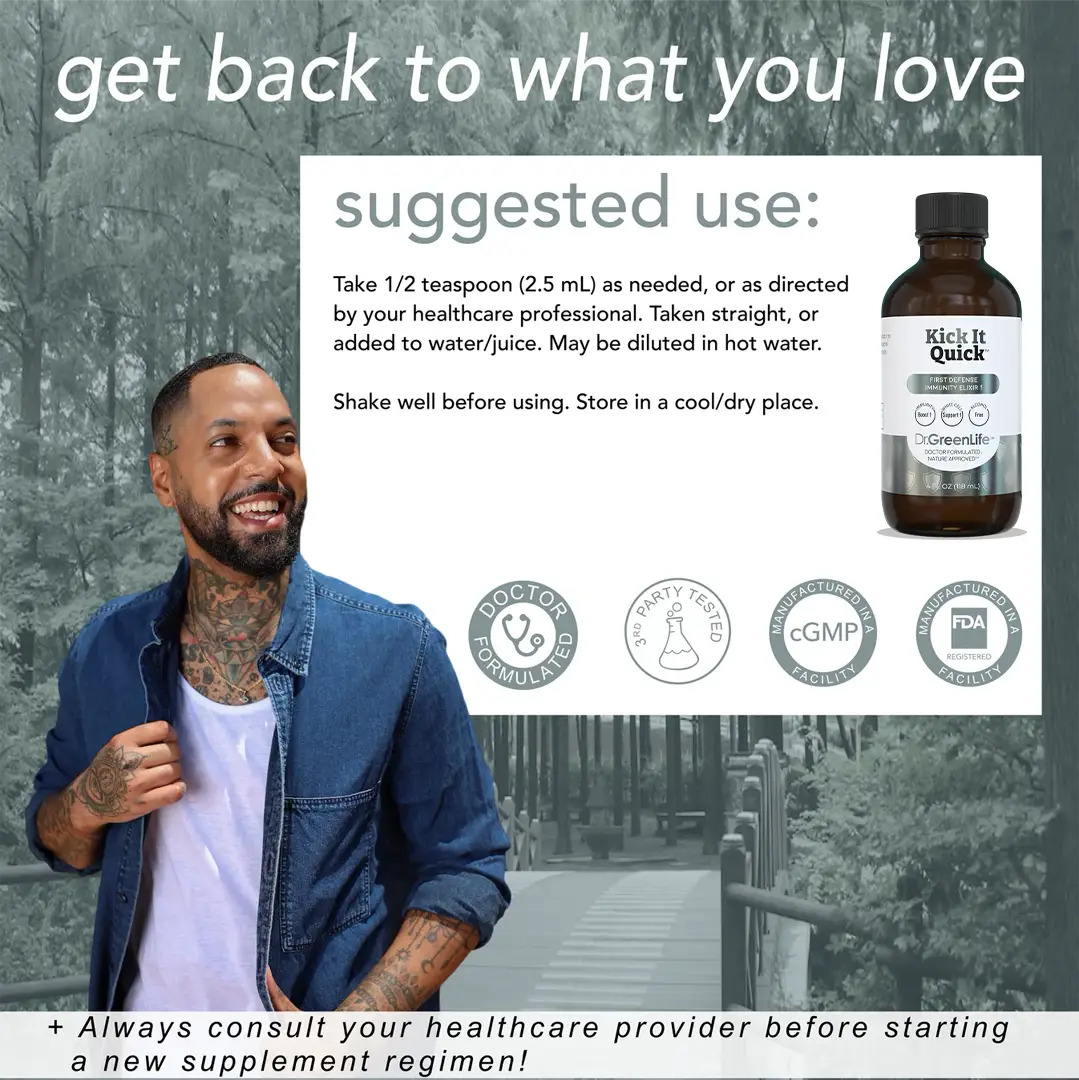 Stimulating, Sweet, and Simple. Kick it Quick™, is a potent herbal remedy to give the immune system a jump start. Well known botanicals supported by modern research and great traditional use to offer support during occasional cold and flu symptoms.
