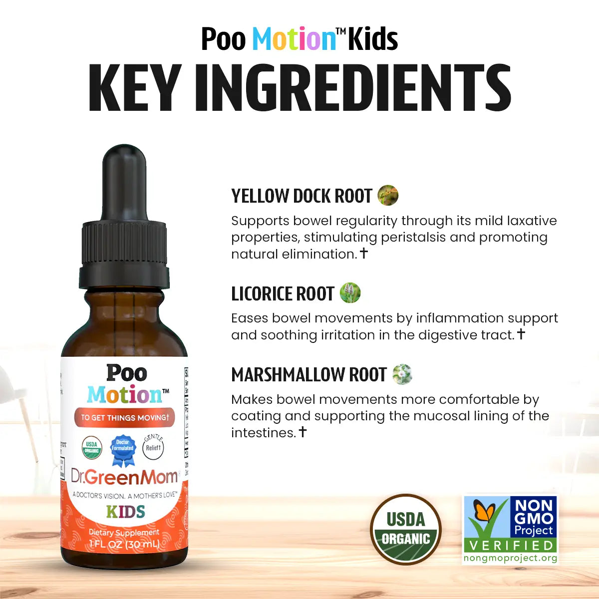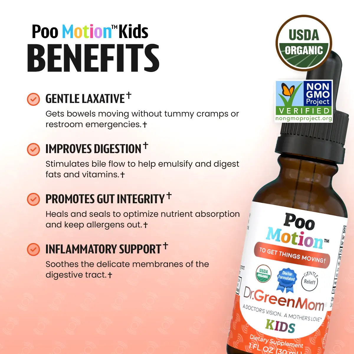 Poo Motion for Kids is a gentle, mild laxative formula, for occasional constipation relief.