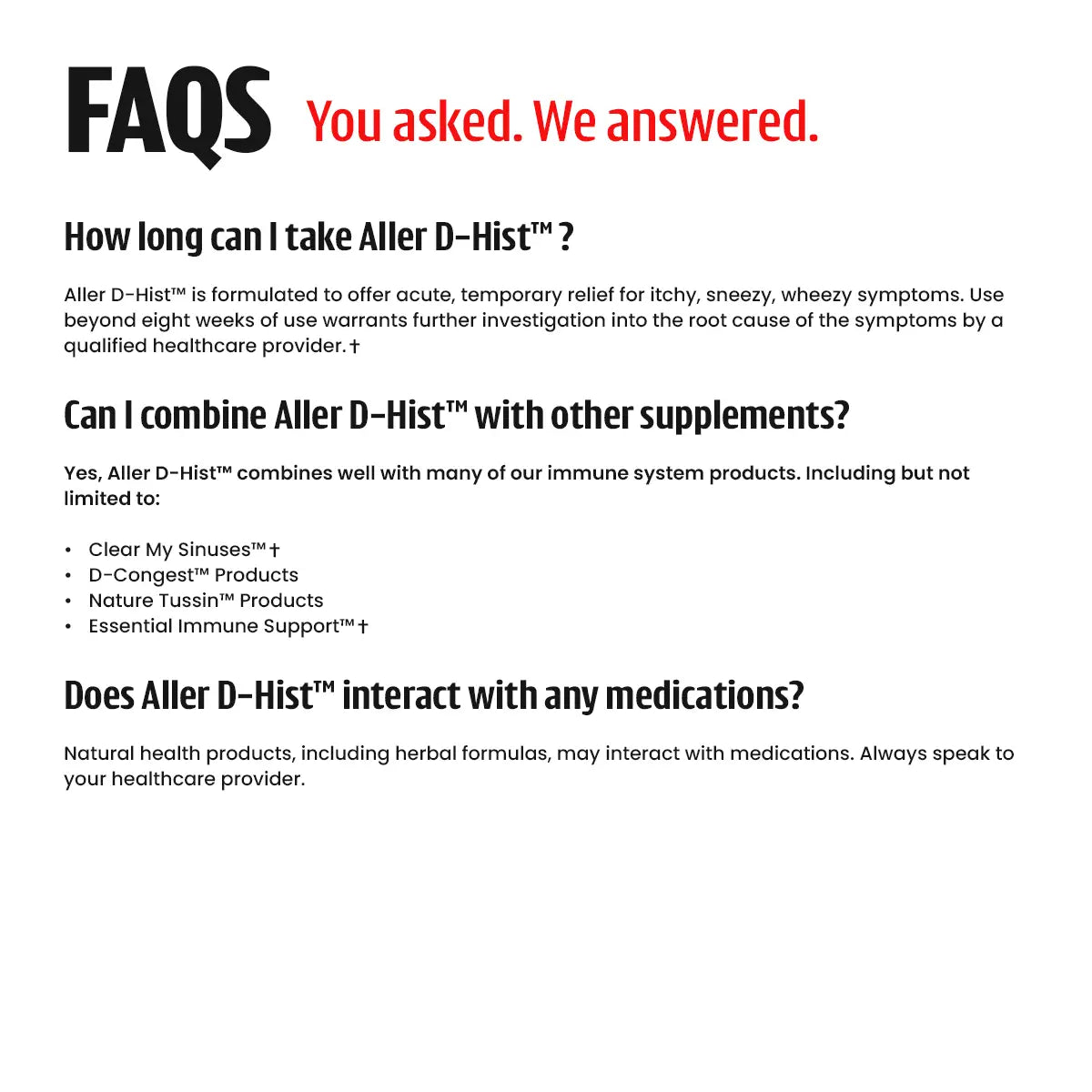 • We formulated Aller D-Hist Liquid for the many parents who swear by our bestseller: Aller D-Hist (Kids) during pollen season